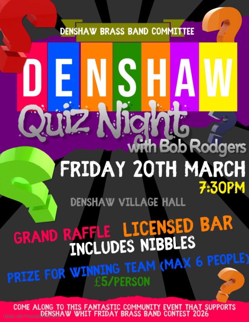 Denshaw Contest has a twitter account @DenshawContest. Before the contest we will be tweeting useful info. On the night we will be replying to tweets and providing updates on bands waiting etc. Results will be tweeted as soon as they are confirmed